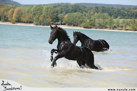 Klíčová slovaKlíčová slova: 2009, dva, fríský kůň, hříbě, jiný, klisna, klisnička freya, koupání, léto, na šířku, skákání, slunečno, voda, vraník,